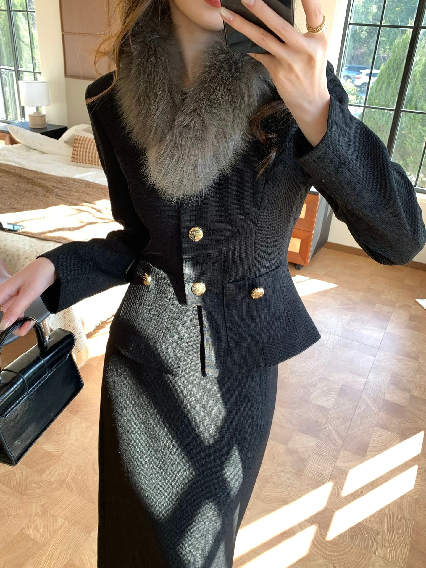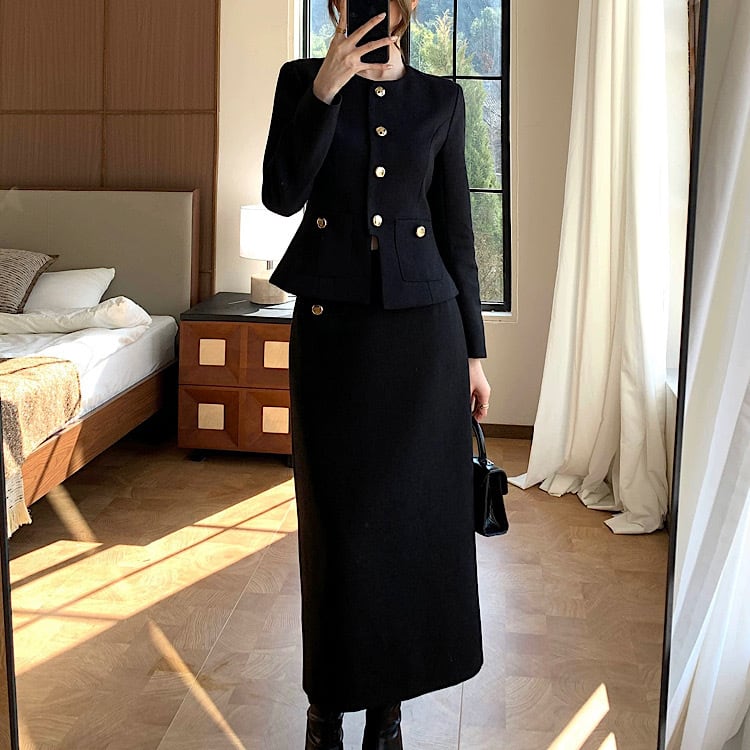ボタンフロント ミドル丈 ペプラム ジャケット YH10010