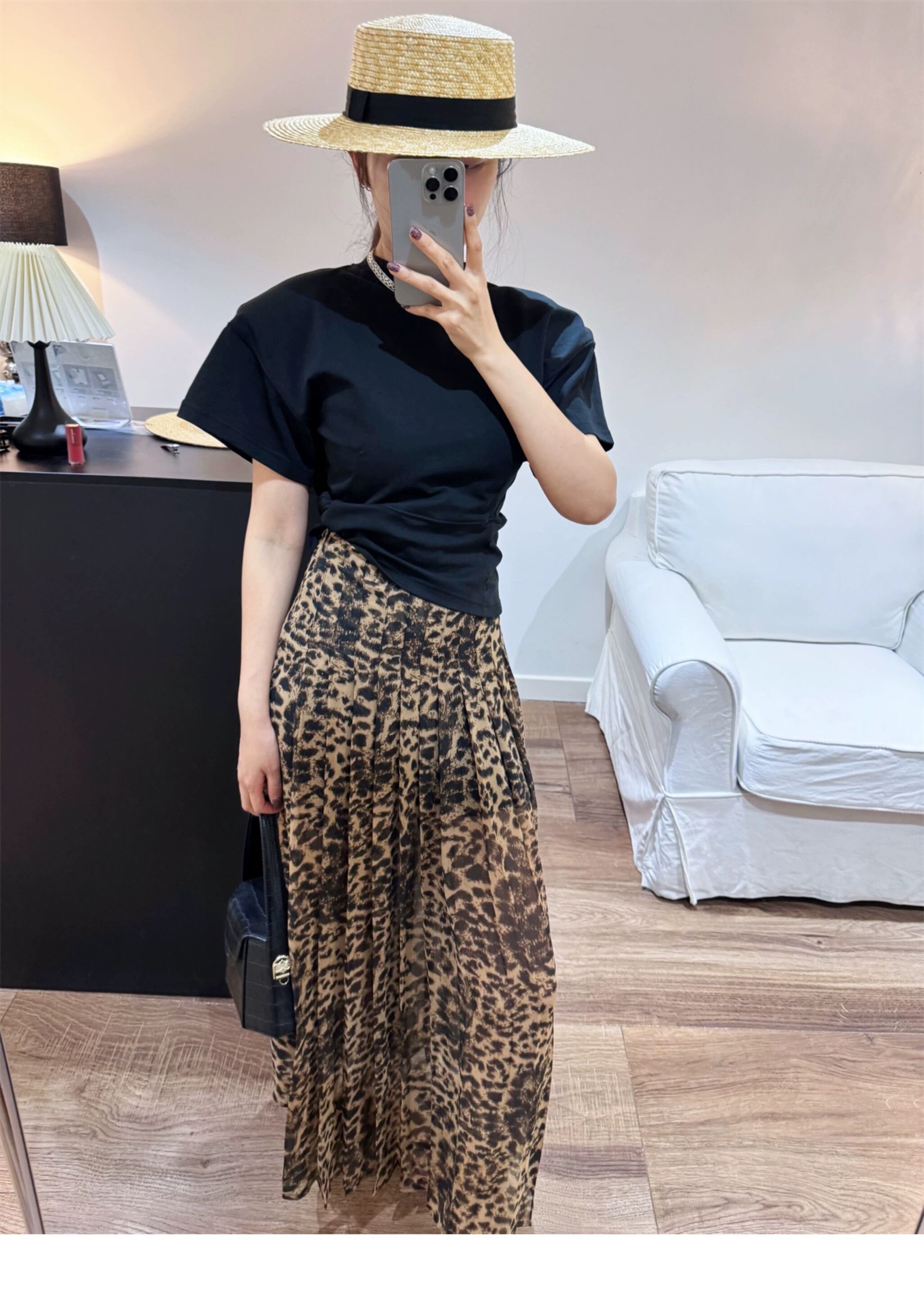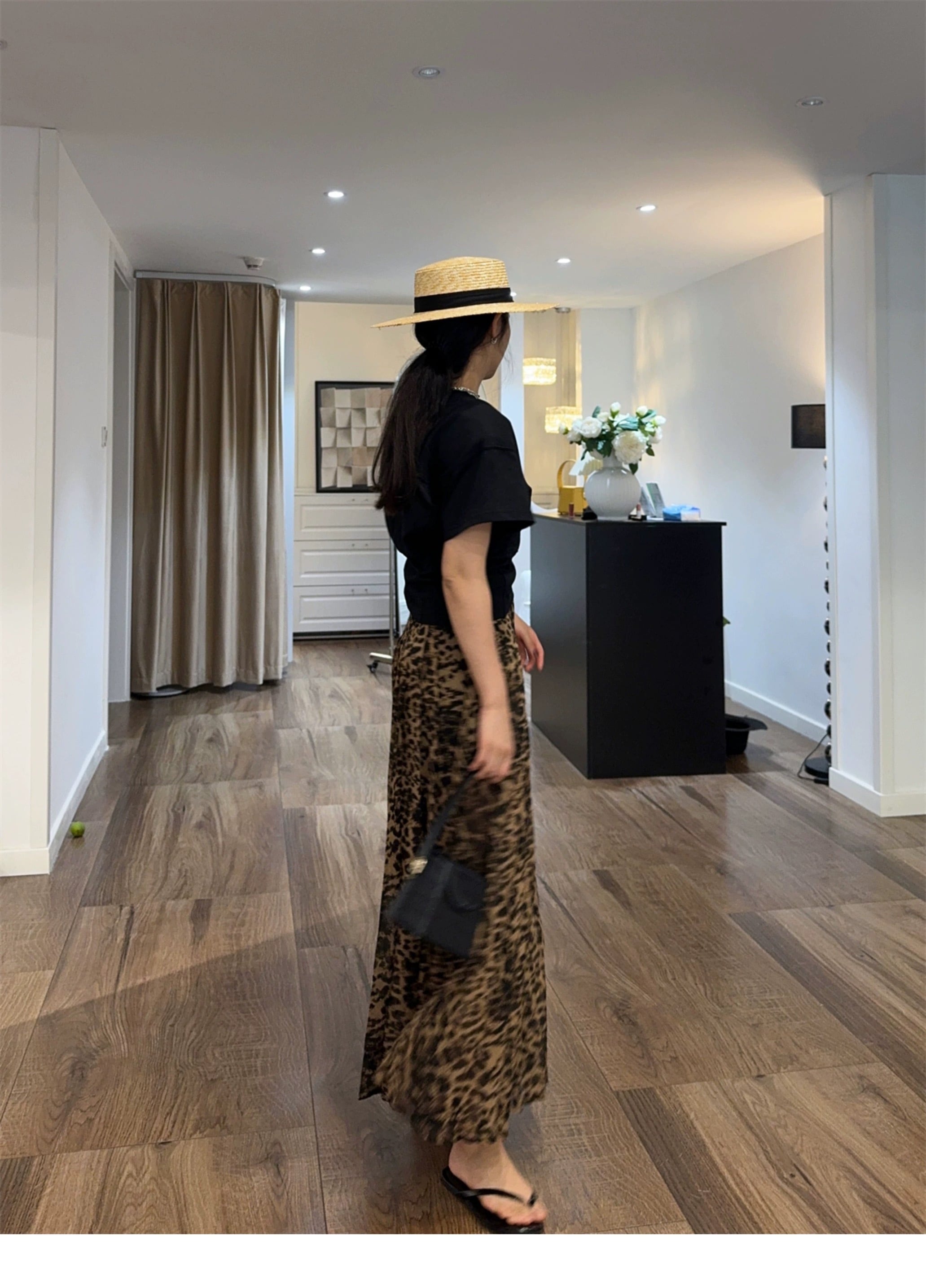 韓国風 ヒョウ柄 ロングスカート YH8166