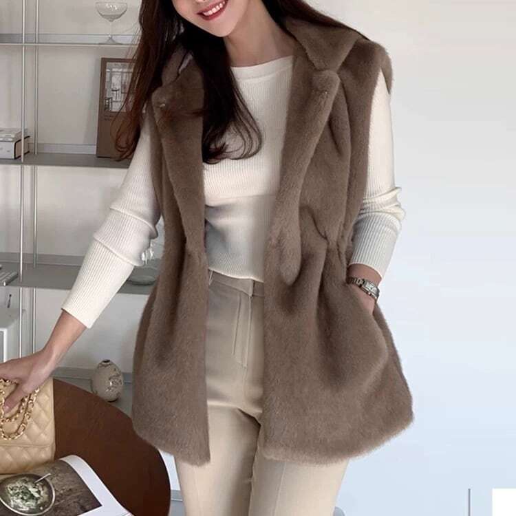 模造ミンクファープリーツ 痩身ミッドレングス ベスト ◆2col YH8553