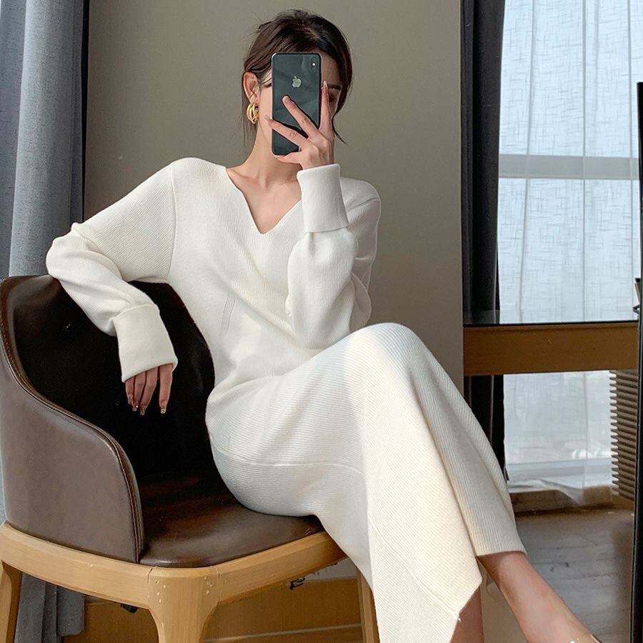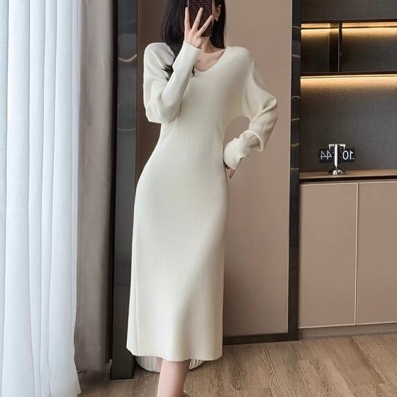 V ネックセータースリムニットドレス YH8364