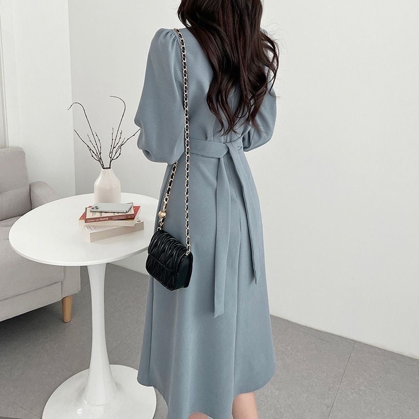 Vネックパフスリーブ ワンピース◆2col YH8434