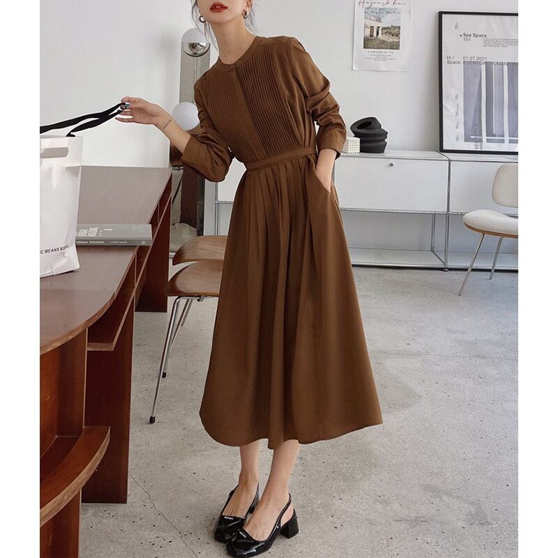 プリーツ ラウンドネックワンピース ◆2col YH8488