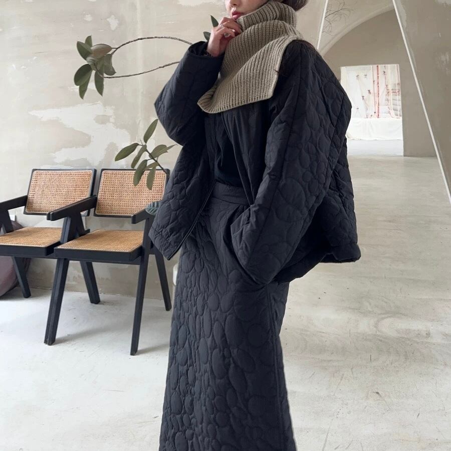 キルティングコットンジャケット+スリットスカート ウエストゴム YH8469
