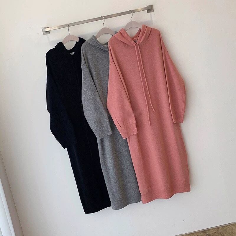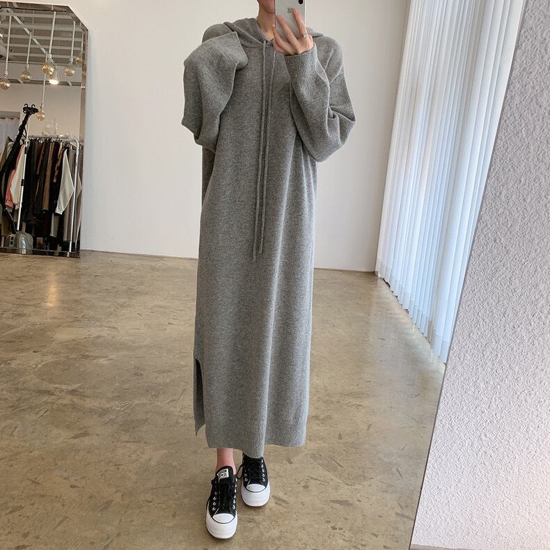 カジュアルなスリットフード付き ニットワンピース ◆2col YH8543