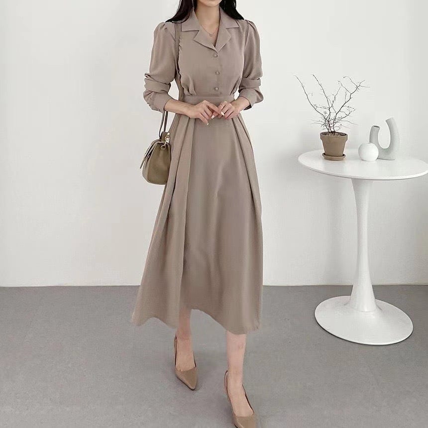 ウエストスリム Aラインロングワンピース ◆3col YH8547