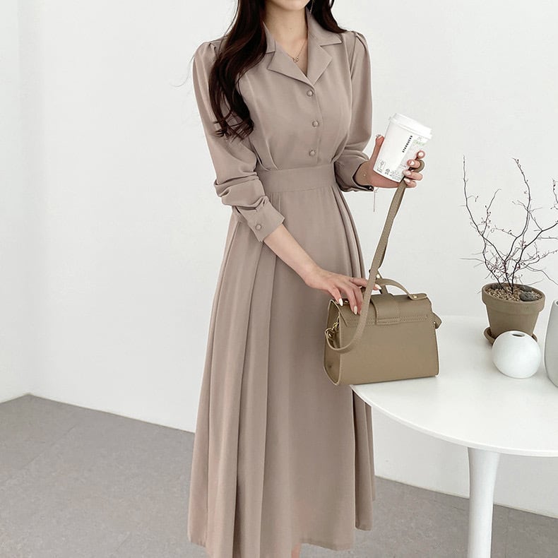 フレンチスタイルのスーツの襟 ロングワンピース ◆3col YH8649