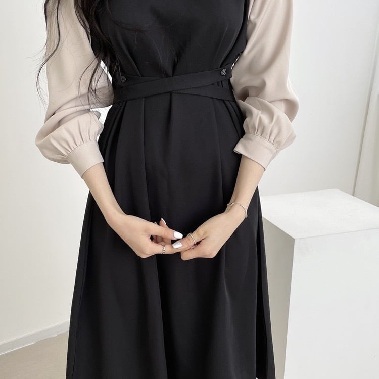 エレガント リボンウエスト泡袖ワンピース YH8658