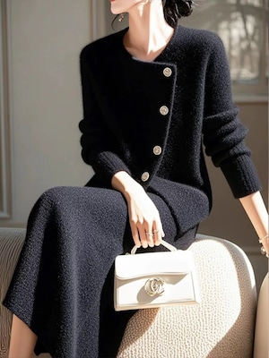 体型カバー ミドル丈 ニットジャケット・スカート2点セットアップ YH8660