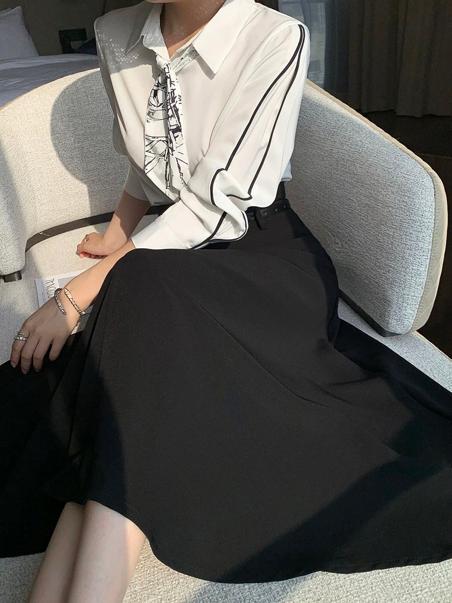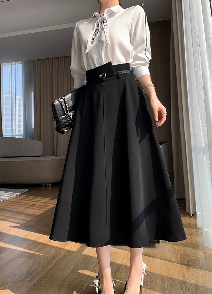 高腰 エレガント ヘプバーン風 Aライン ロングスカート YH8766