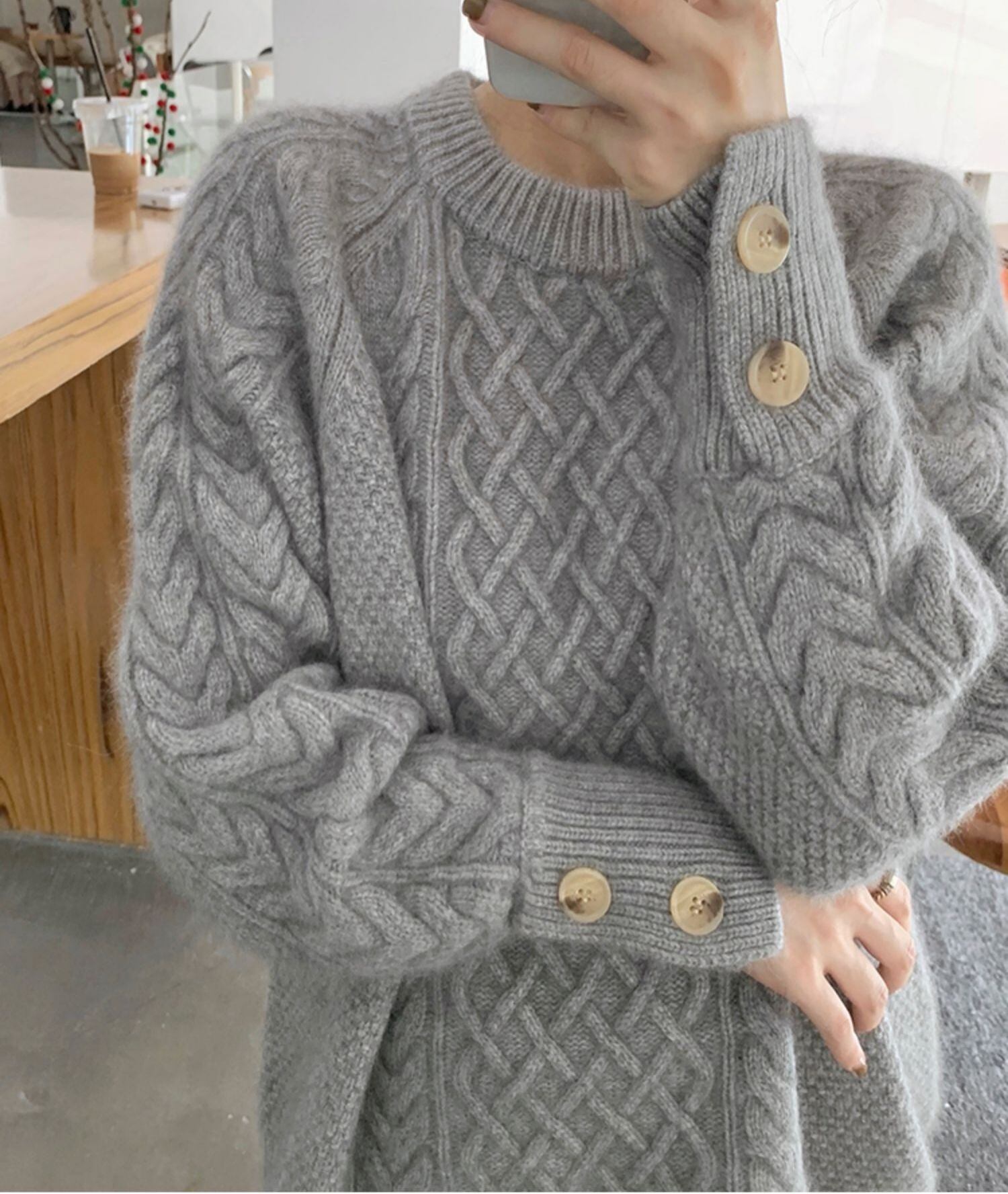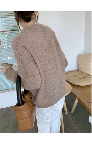 ゆるふわ風 ラクーントップス ケーブル編み 厚手ニット YH8816