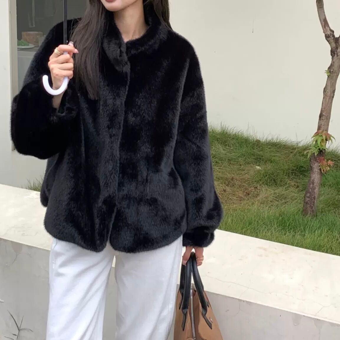 フェイクミンクコート レディース スタンドカラー ショート丈 ◆2col YH8822