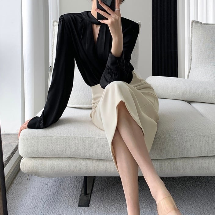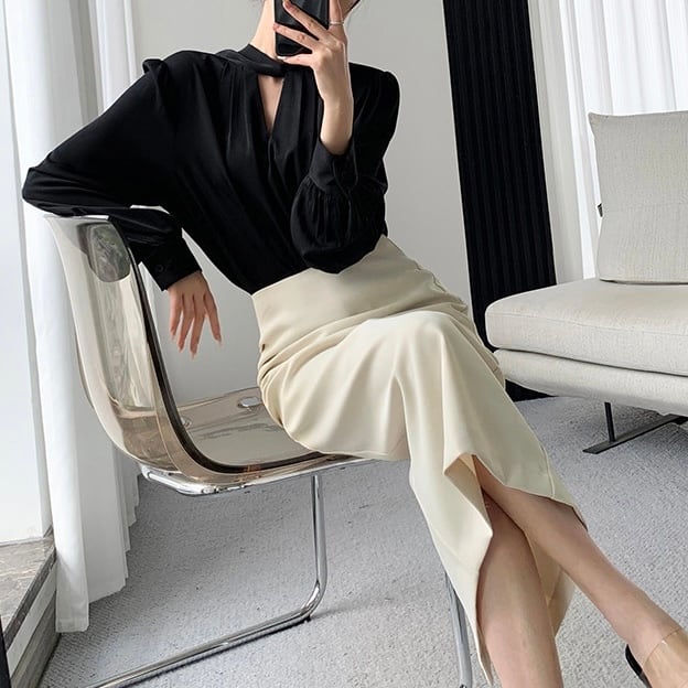 高級感 スリム見え おしゃれなセミスカート YH8818