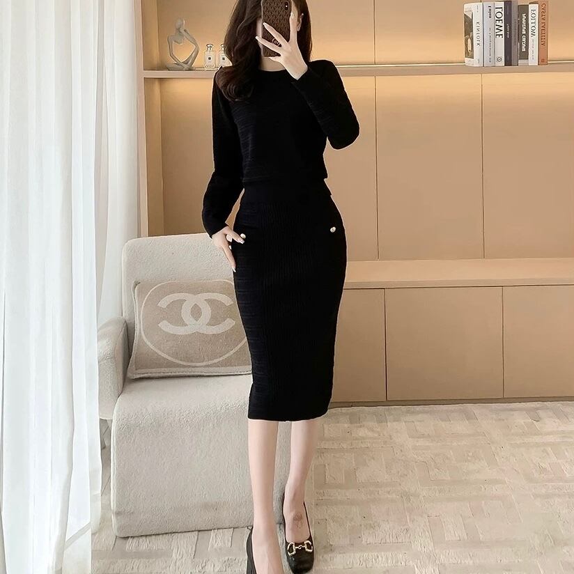ツーピースセット ニットセーター+スリムフィットタイトスカート 2点set ◆2col YH8801