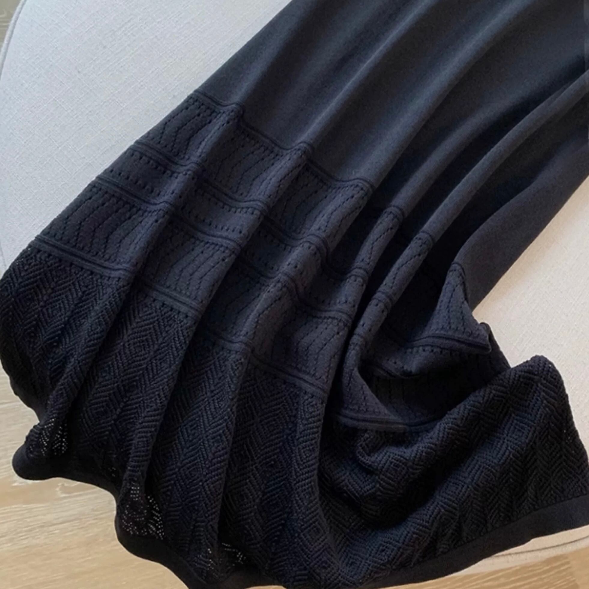 薄手ニットワンピースウエスト痩せミディアムロングAラインスカート ◆2col YH8829