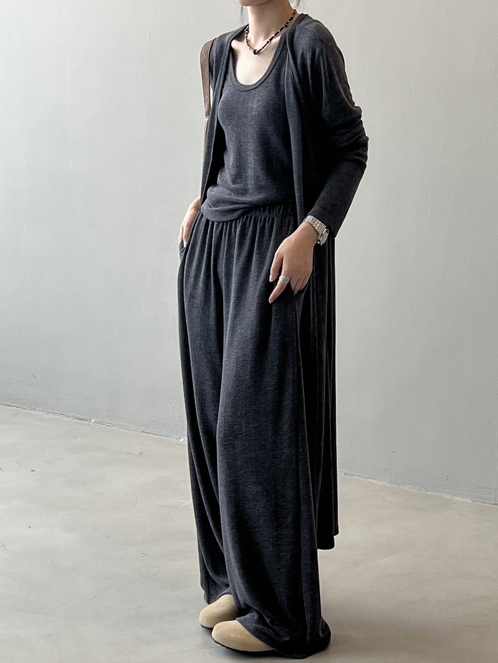 ルーズスタイル 3点セット ロングカーディガン+キャミソール+ワイドレッグパンツ ◆2col YH8858